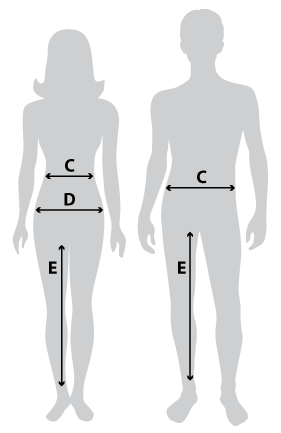 If one of your measurements is on the borderline between two sizes, order the smaller size for a tighter fit or the larger size for a looser fit. For women, if your measurements for hips and waist correspond to two different suggested sizes, order the one indicated by your hip measurement.